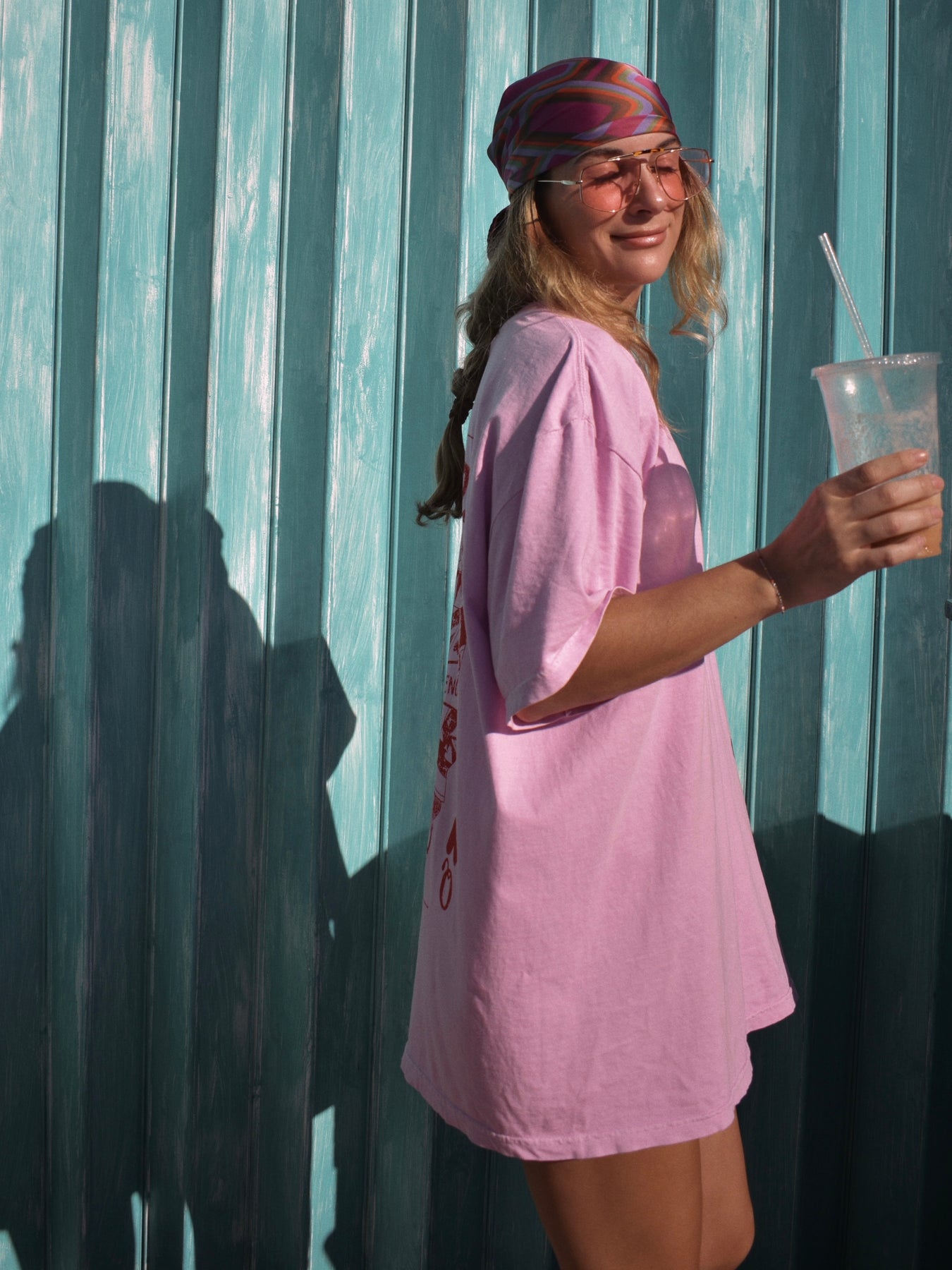 CARE. this tee requires extra TLC | she is washing machine friendly but we recommend washing her inside-out & being very cautious when removing stains as to not alter the pigment of the tee itself | absolutely NO stain removers because of the unique dying process to achieve these dreamy colors & remember cotton is very easy to shrink - so anticipate mild shrinkage or consider tumbling dry on low heat or hanging your tee to dry